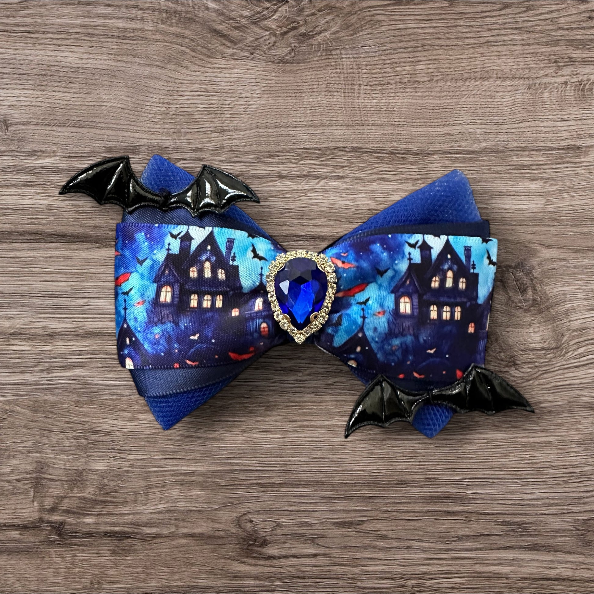 Elevate your furbaby's style with the spooky charm of our Haunted House bow tie. This intricately designed bow tie features a hauntingly adorable haunted house theme, perfect for any special occasion. Add a touch of Halloween to your pet's wardrobe and make them the talk of the town.